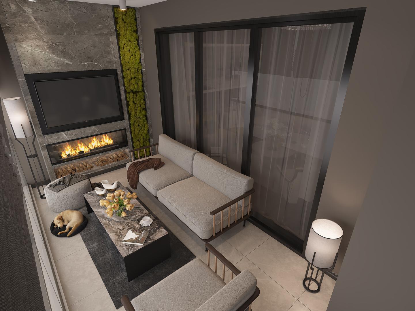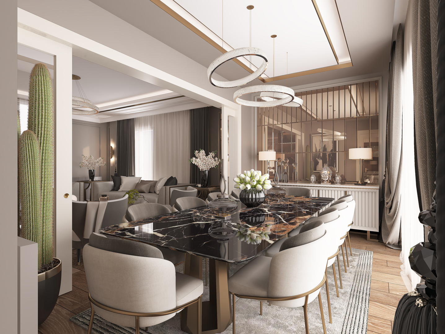 - Geniş oturma alanlarını tamamlayan zarif mobilya seçimleri