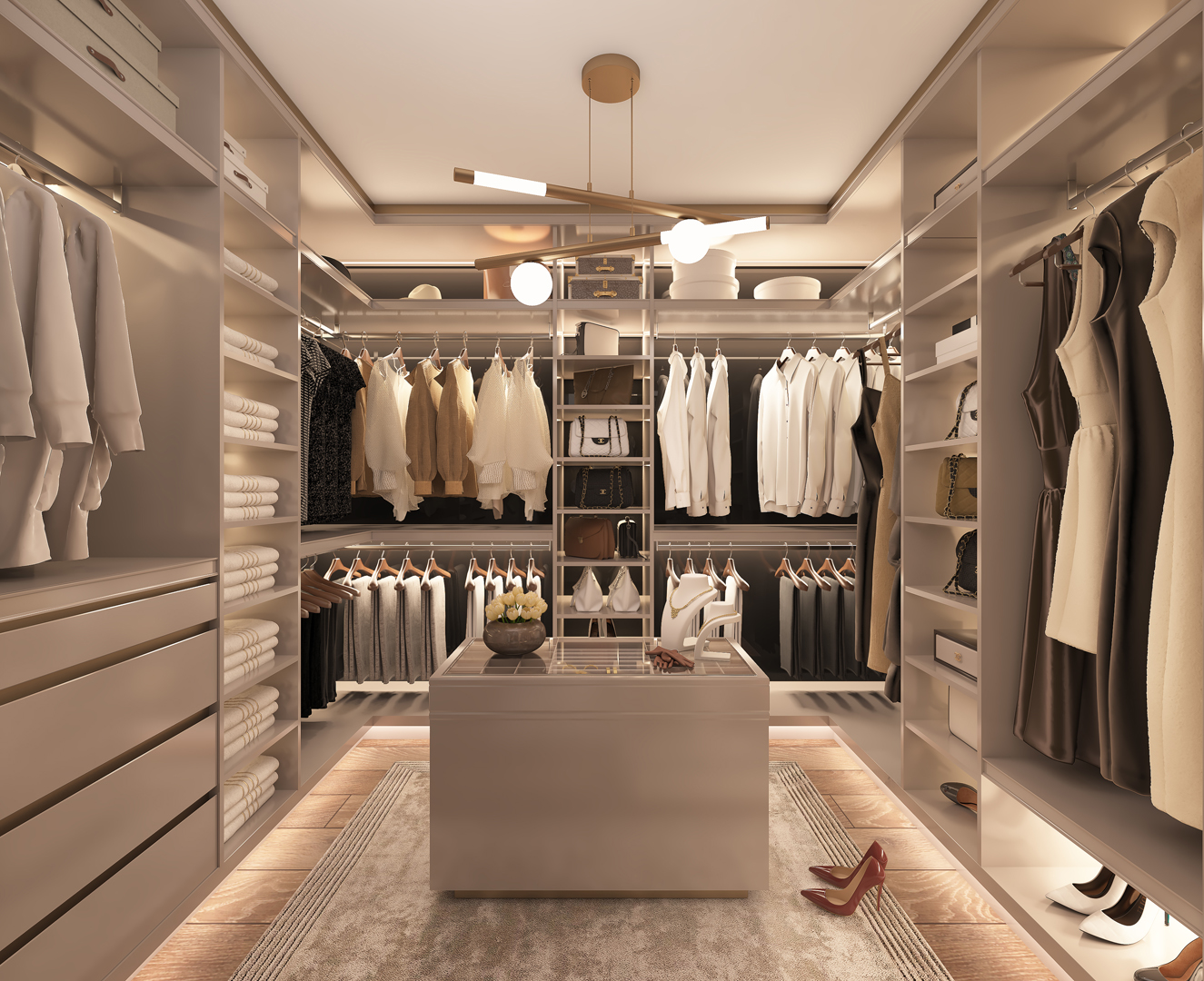 - Sade ve şık tasarım çizgileriyle harmanlanmış depolama çözümleri